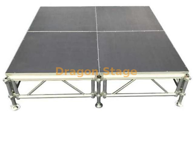 Conception à quatre pieds: Les quatre pieds fournissent un système de support stable et robuste, garantissant que la scène reste de niveau et sécurisée pendant les représentations. Cette conception permet également un montage et un démontage faciles, ce qui en fait un choix pratique pour les événements aux horaires serrés[^6^].