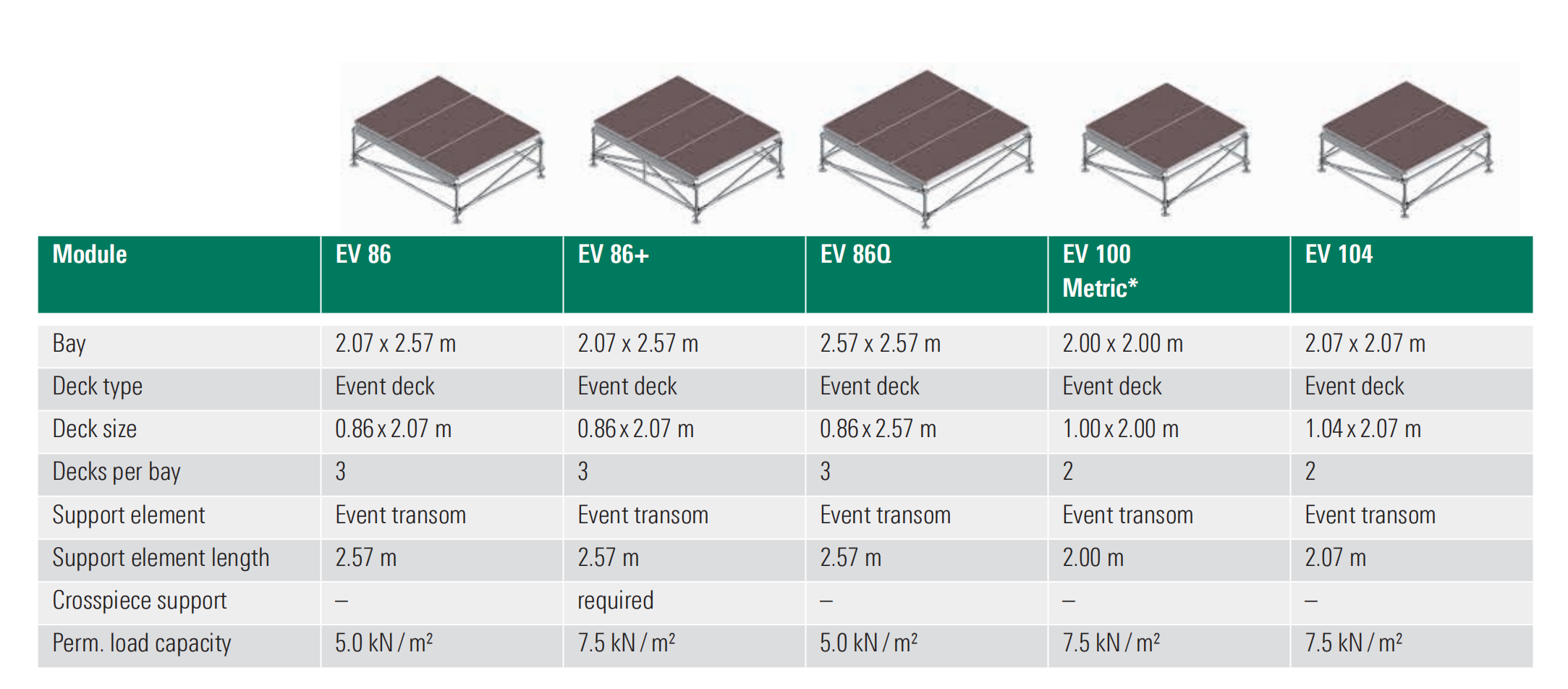 Layher Stages System Modules EV86, EV86 +, EV86Q, EV100, EV104: Solutions polyvalentes et modulaires pour les structures temporaires