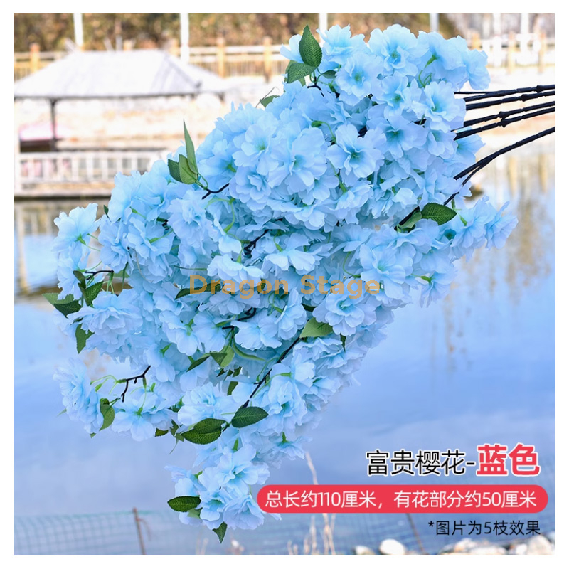 Branches de fleur de fleur de cerise simulées Fleur de cerise Plum Blossom Peach Blossom Branches Plastique Fleurs intérieure salon Plafond Balcone bleu Rich Cherry Blossom Blue 1 branche
