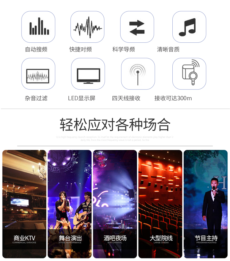 Vous êtes ici: Maison » BOUTIQUE » son typique » équipements de sonorisation pertinents typiques » Microphone professionnel sans fil True Diversity Performance de scène en plein air Mariage KTV One Drag Two Lavalier Microphone U Segment