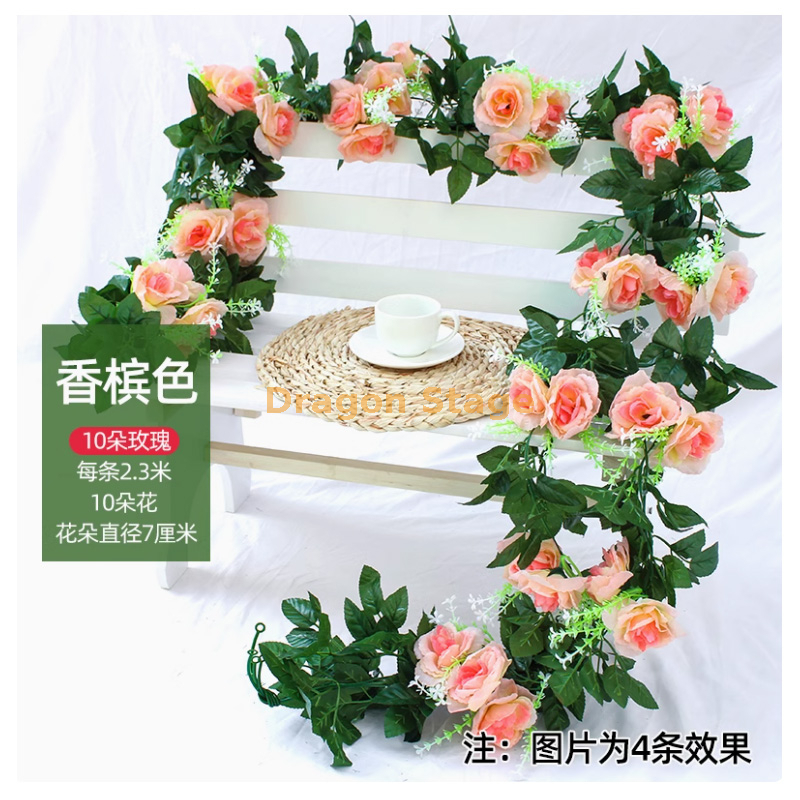 Vous êtes ici: Maison » Des produits » Fleurs artificielles » Mur de vigne rose simulée suspendue fausse fleur vigne conjugal pipe de climatisation tuyau de salon intérieur décoration plafond vigne champagne couleur -10 roses 1