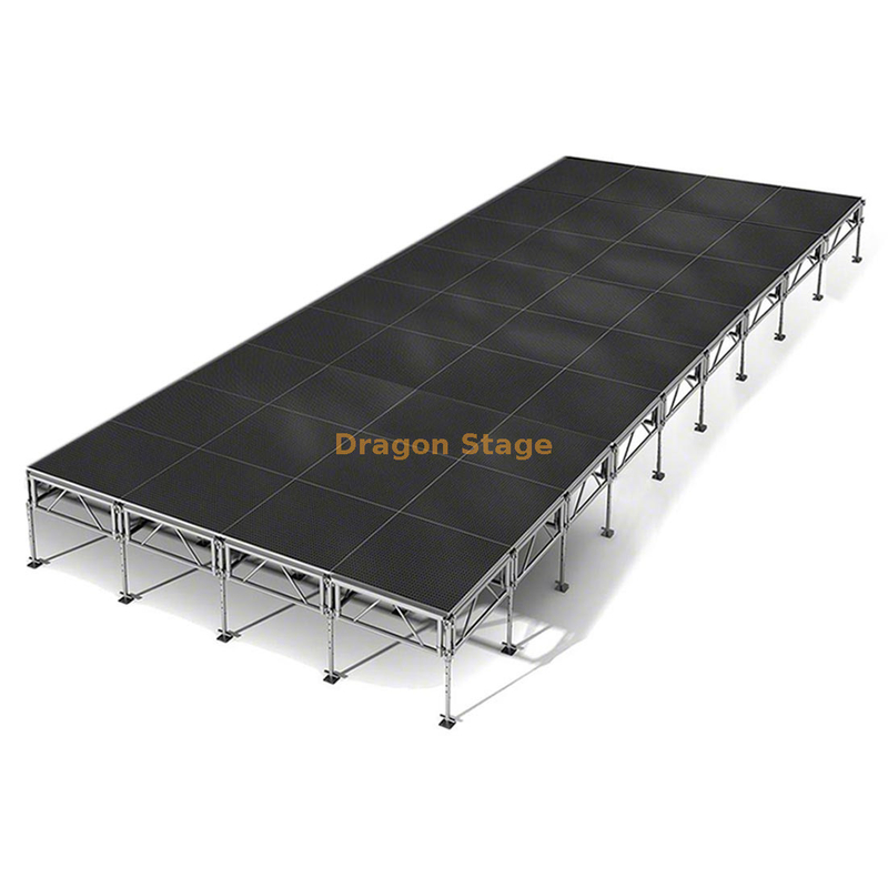 Surface antidérapante : les dessus de plate-forme sont conçus avec une finition antidérapante à haute traction, souvent une texture « hexa » ou industrielle, pour garantir la sécurité des artistes même dans des conditions humides.