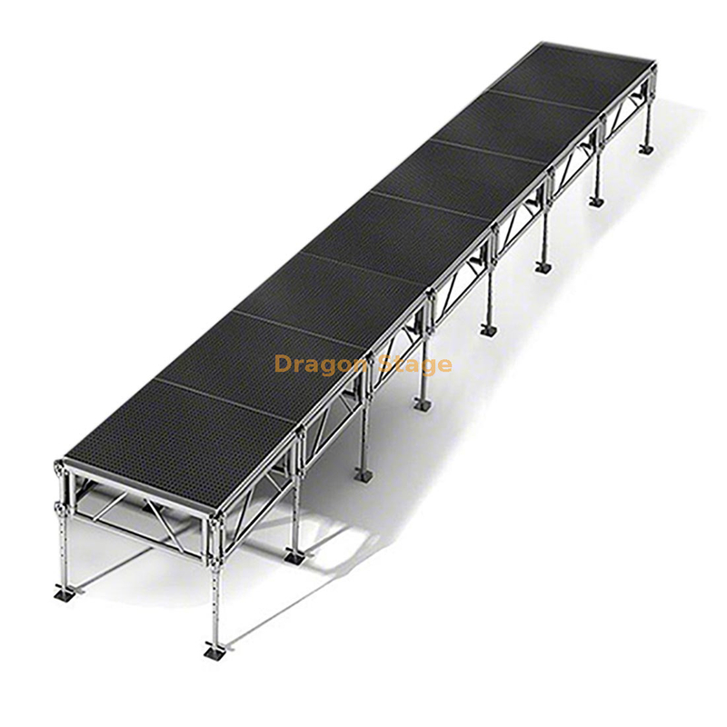 Construction haut de gamme : construite en alliage d'aluminium 6061-T6 à haute résistance, cette scène est légère pour un transport facile mais exceptionnellement solide, supportant des charges de grande capacité pour l'équipement et les artistes.