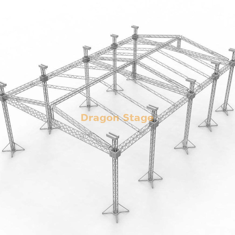 Support au sol professionnel : La structure repose sur des supports au sol robustes et des plaques de base robustes, éliminant le besoin d'un gréement de suspension complexe à partir d'un toit permanent, ce qui la rend polyvalente pour les installations extérieures et temporaires.