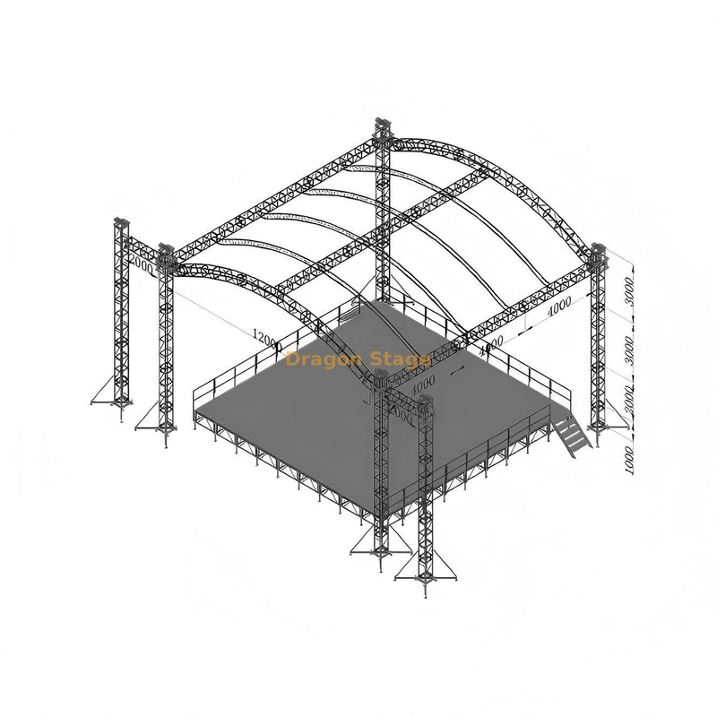 Ce système de fermes de toit et de scène en aluminium robuste de qualité professionnelle est conçu pour les événements extérieurs et intérieurs à grande échelle, offrant une solution robuste et esthétiquement attrayante pour vos productions. La conception innovante du toit incurvé assure un drainage efficace de l’eau et ajoute un élément visuel dynamique à n’importe quel lieu.