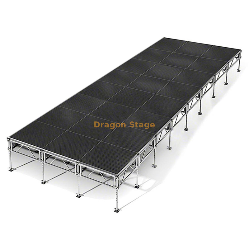 Hauteur réglable : la hauteur de la scène peut être ajustée de 1,2 à 2 mètres, s'adaptant à divers besoins d'événements et niveaux de sol.
